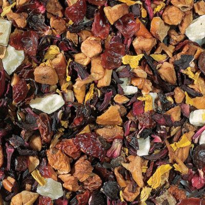 Ingredienser: Æblestykker, hibiscusblomster, hybenskaller, ananasterninger (ananas, sukker, surhedsregulerende middel: citronsyre), kanelstykker, aroma, solsikkeblomster.
