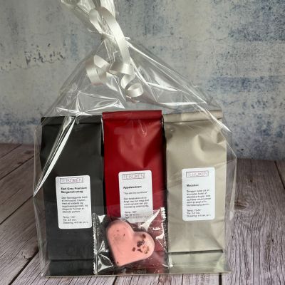 3 poser løs te + marcipanhjerte