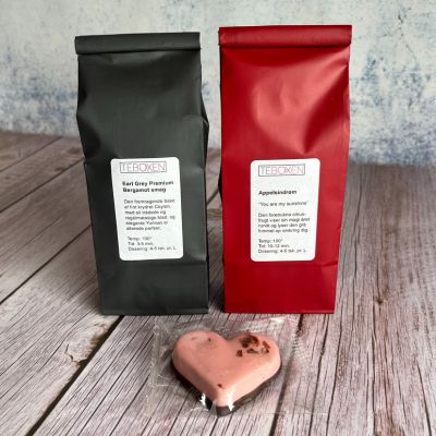 2 poser løs te + marcipanhjerte